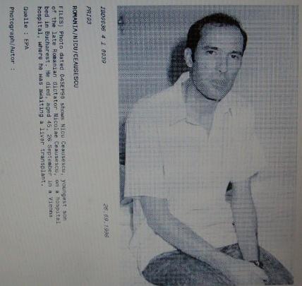 (Securitate.org) The youngest son of the former Romanian dictator Nicolae Ceausescu did not die in Vienna in 1996. He lives at the moment in Vienna, Austria. Nicu Ceausescu had officially more than a dozen doubles. None of the doubles looked like the real Nicu Ceausescu. I was born in Romania and lived there for about 30 years. My father worked in the army and was the director of the Romanian Military Prosecutors until 1985. I have information from colleagues of his who worked for the Securitate and visited my family frequently at the time. I have lived since 1987 in Vienna, Austria. I have seen some of the doubles and I have seen the real person in 1986. At that point I realized: the real Nicu Ceausescu had never appeared in public. I saw the real Nicu Ceausescu in 1986 on the street in Bucharest; he was together with a very beautiful Romanian opera singer, Daniela Vladescu, his friend at that time. He stopped for a while as he realized I saw him, looked at me, then went on. I can remember every detail of his face. His doubles had almost nothing in common with him. Anyone could have thought, he was a bad copy. Anyone should have believe that. Everybody knew about the Ceausescu family having doubles; that was part of the strategy, according to a Securitate-General: people should know there were lots of doubles running around. They should also know, there were lots of bad copies so that nobody at all could say, what the real Nicu Ceausescu really looked like. Except: none of his doubles was ever allowed to accompany Ms. Vladescu. Ms. Vladescu is one of the very few persons who could identify him. I guess, she would never do that. According to her police declaration after the arrest of Nicu Ceausescu, she was not allowed to visit Nicu Ceausescu in Sibiu beginning with 1987. He would visit her in Bucharest. And why? Because the real Nicu Ceausescu was not in Romania anymore after 1987. At that time he was already in Austria. The photos showing Nicu Ceausescu's arrest and imprisonment in 1989 show a double. The ones showing Nicu Ceausescu in Vienna on September 26, 1996, a short time before he died, also [show a double].